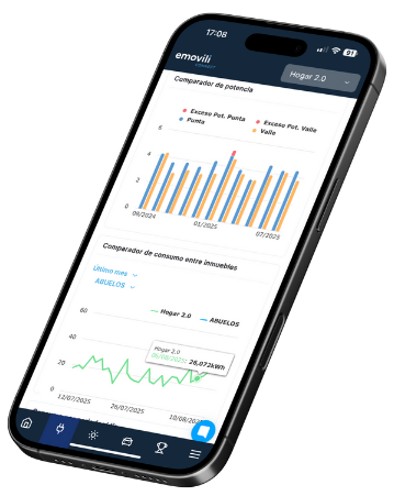 emovili Connect te permite gestionar uno o varios inmuebles en función del plan al que te suscribas. El Plan Estándar de emovili Connect (gratuito para siempre) te permite gestionar 1 único inmueble (1 punto de suministro o CUPS). Sin embargo, el Plan Premium, te permite gestionar y llevar el control del consumo energético de hasta 10 puntos de suministro o CUPS. Incluso puedes hacer comparativas de consumo entre ellos. Y todo desde tu área privada de emovili Connect.